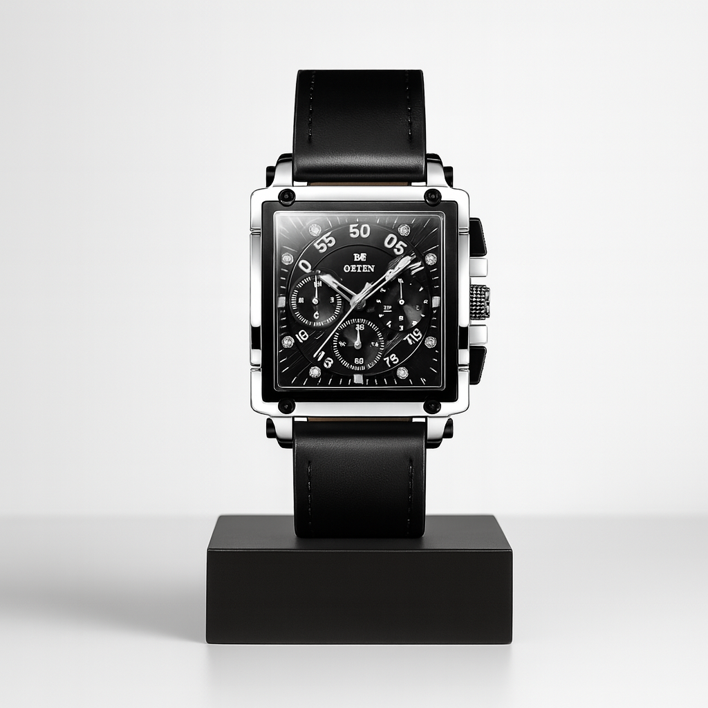 Arvion Herre Kvadratisk Kronograf Lædeur har en markant kvadratisk urkasse, der genfortolker klassisk kronografstil. Kombineret med en blød læderrem giver dette 42x45mm ur et moderne præg, samtidig med at det forbliver praktisk til daglig brug. Den unikke form gør det til et iøjnefaldende tilbehør for mænd, der værdsætter raffineret design.