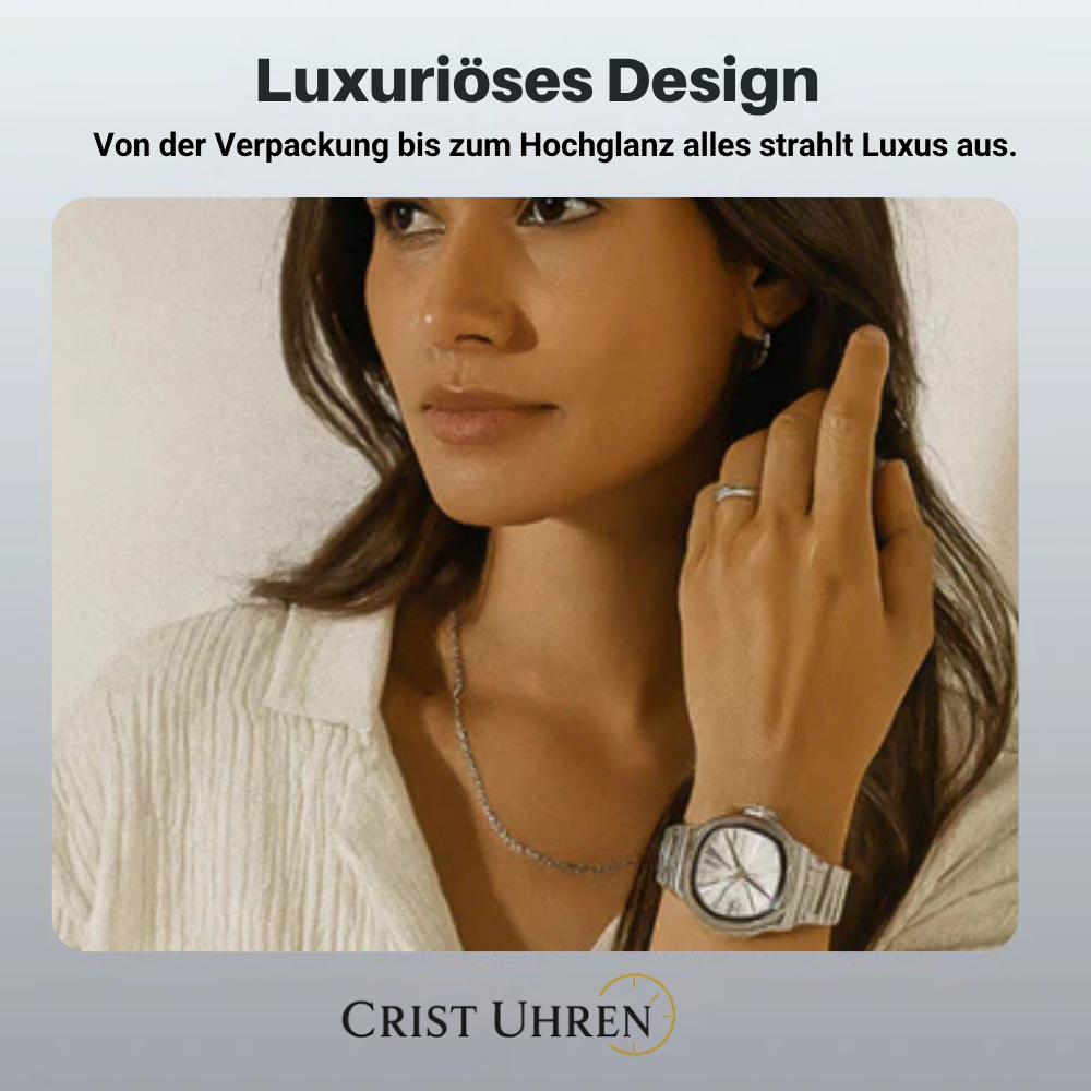 - Strahlendes Zifferblatt mit Kristallakzenten für faszinierenden Glanz