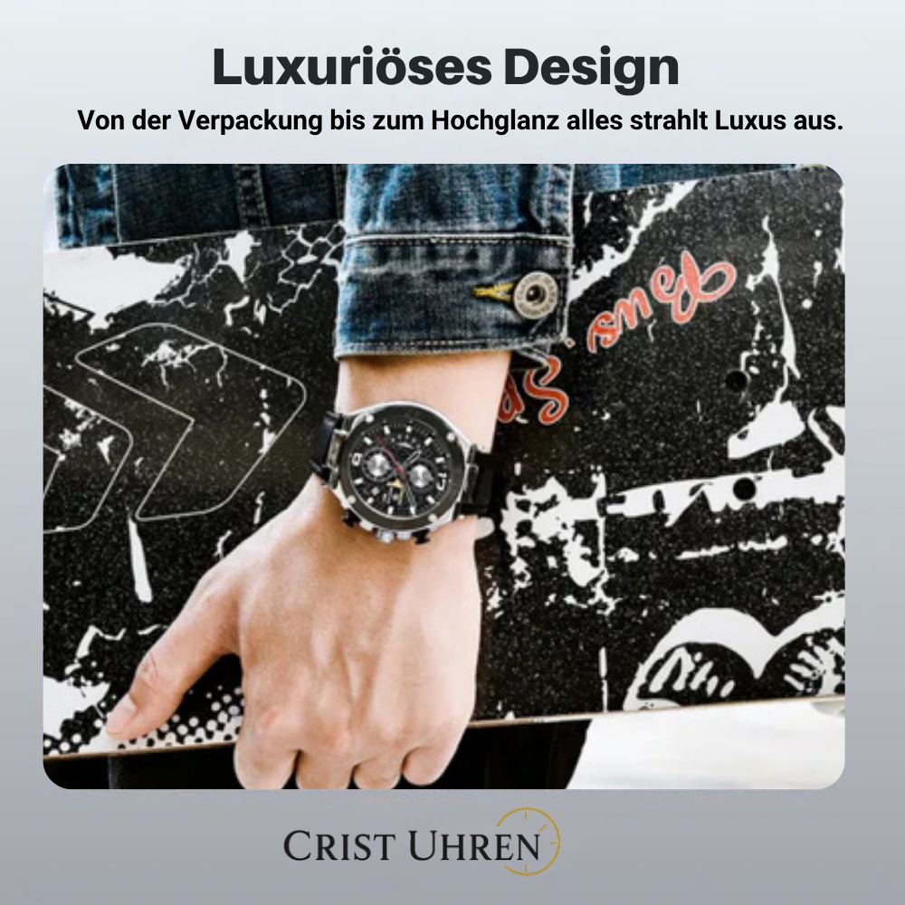 Die Logan-Uhr verkörpert Energie und Kraft durch ihr markantes Chronographen-Design und fein gearbeitete Details. Entwickelt für Männer, die Dynamik und Fortschritt schätzen, verbindet sie modernen Sportstil mit überlegener Funktionalität – jede Sekunde, ob auf der Straße, im Studio oder im Alltag.